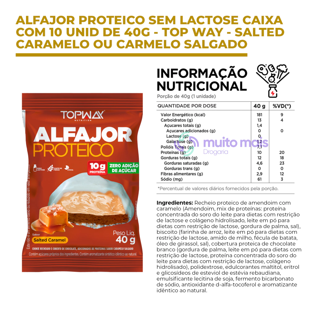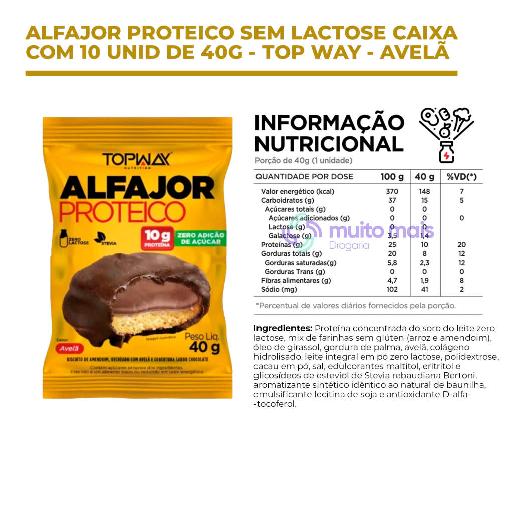Informação Adicional para Emagrecimento: O Alfajor Proteico Topway possui apenas 148 kcal por unidade, podendo ser incluído em dietas de emagrecimento como uma opção mais saudável e saborosa para satisfazer a vontade de comer um doce.