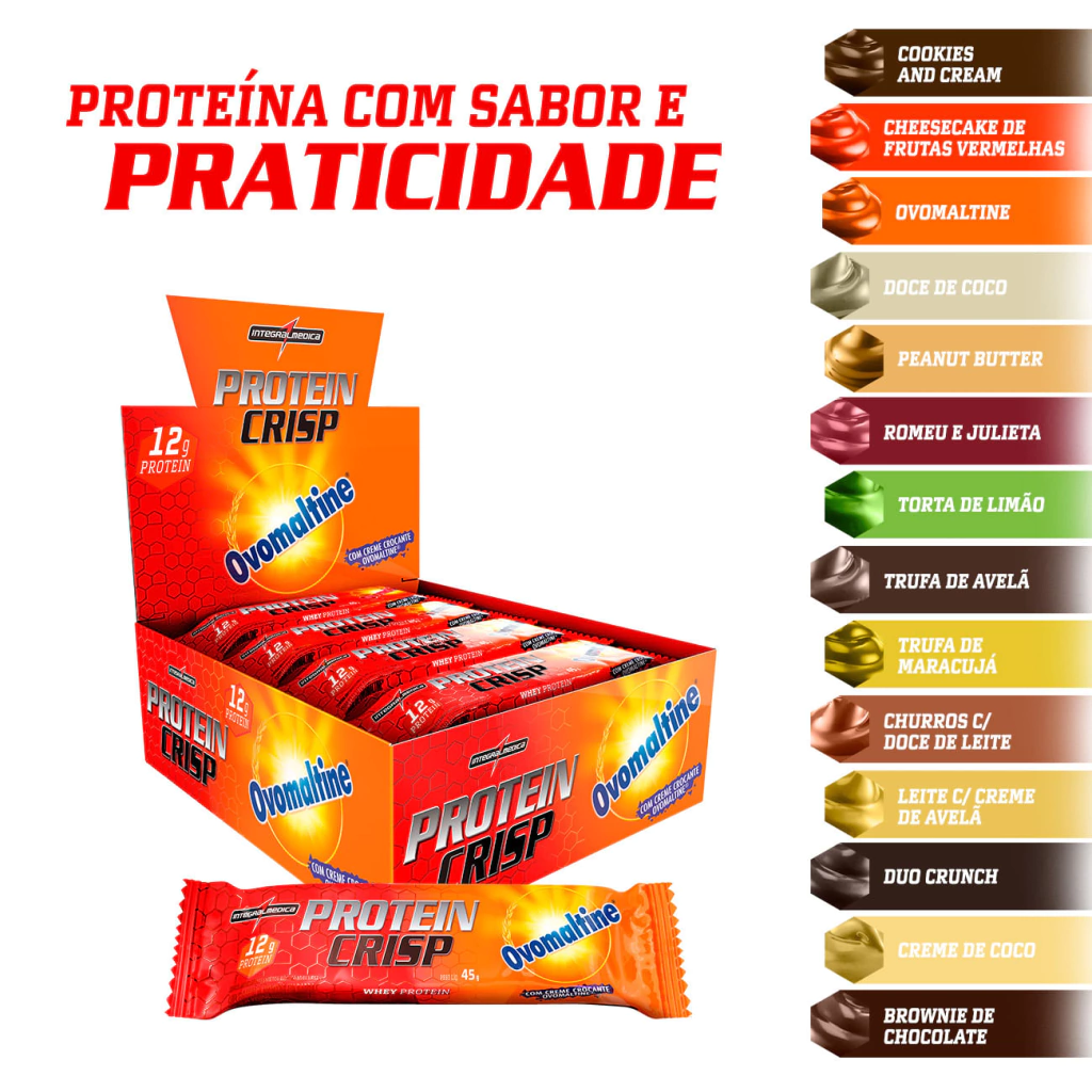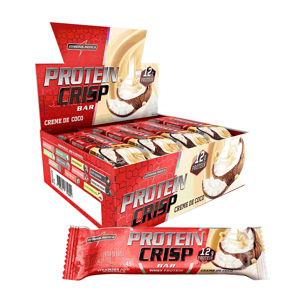 Deu vontade de comer doce sem sair da dieta? Protein Crisp Integralmédica é a barra de proteína com 13 g de proteína e baixa caloria. . Ótima fonte de vitaminas, minerais e fibras, ajuda a saciar a fome e evitar o catabolismo. A Protein Crisp é uma barra de proteína completa, unindo ótima qualidade na composição de seus ingredientes com praticidade de consumo.. Tem ótima digestão é excelente para quem busca uma opção saudável de alimento proteico para incluir em dietas de variados objetivos como: aumento de massa magra, perda de gordura e reposição de proteínas, por exemplo. Pode facilmente ser utilizada como substituto de alimentos doces, tendo textura macia e crocante. Protein Crisp é formulada com Whey Protein pode ser consumida no pré e pós treino, entre as refeições (lanches intermediários) e substituta de sobremesas.