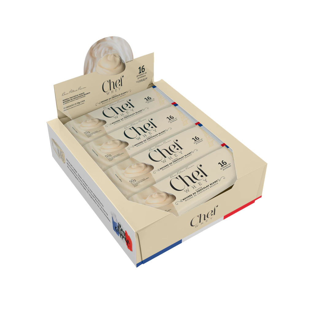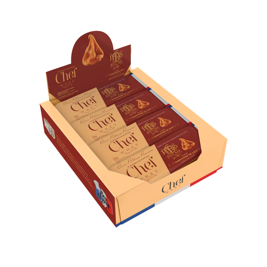 O Display Chef Whey Bar é a solução perfeita para quem busca uma opção nutritiva, saborosa e prática para complementar a dieta ou para um lanche rápido e saudável. Este display contém 12 unidades de barras de 50g cada, garantindo um bom estoque para sua rotina.