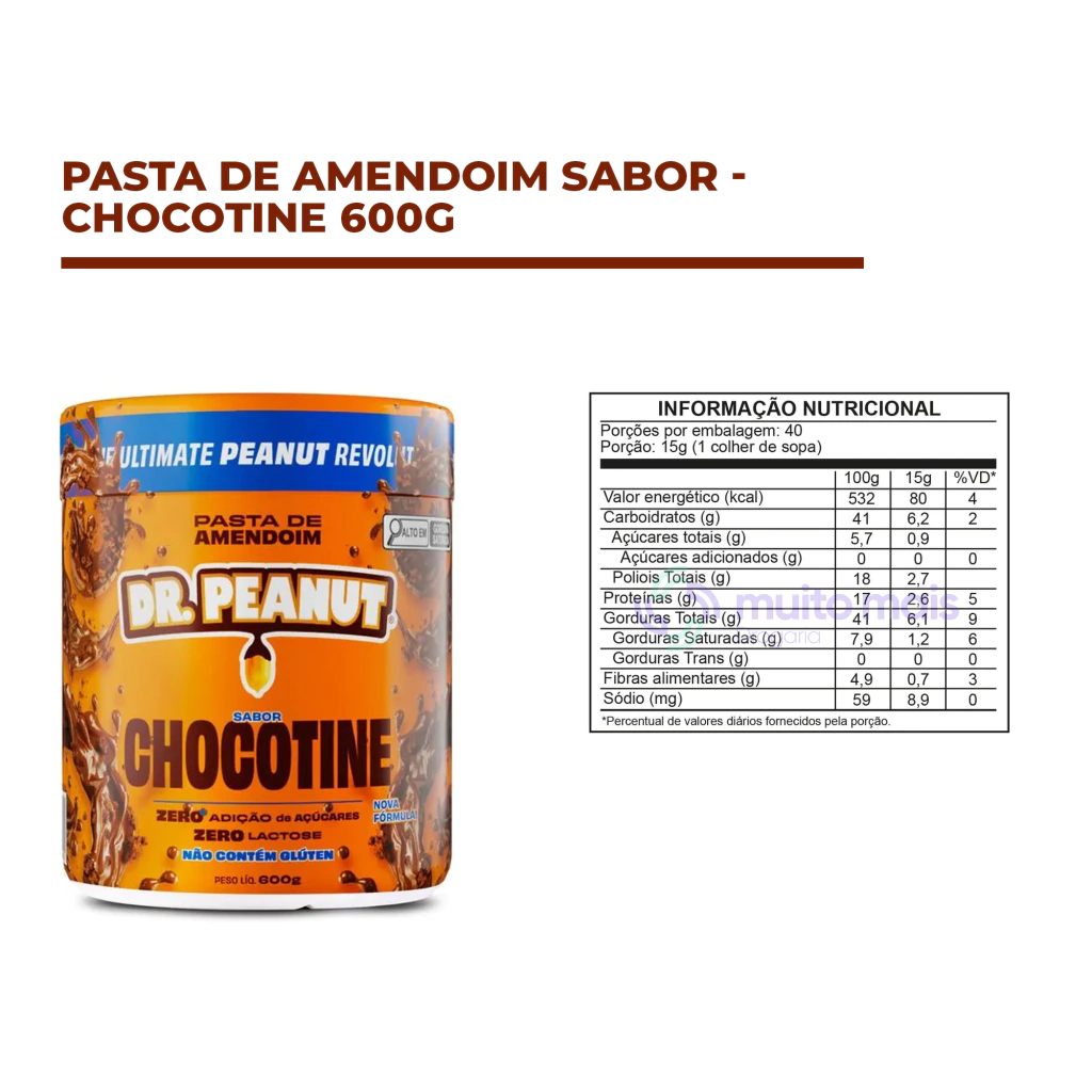 Pasta de Amendoim Dr. Peanut Chocotine (600g) – Zero Açúcar, Zero Glúten e com Whey Protein