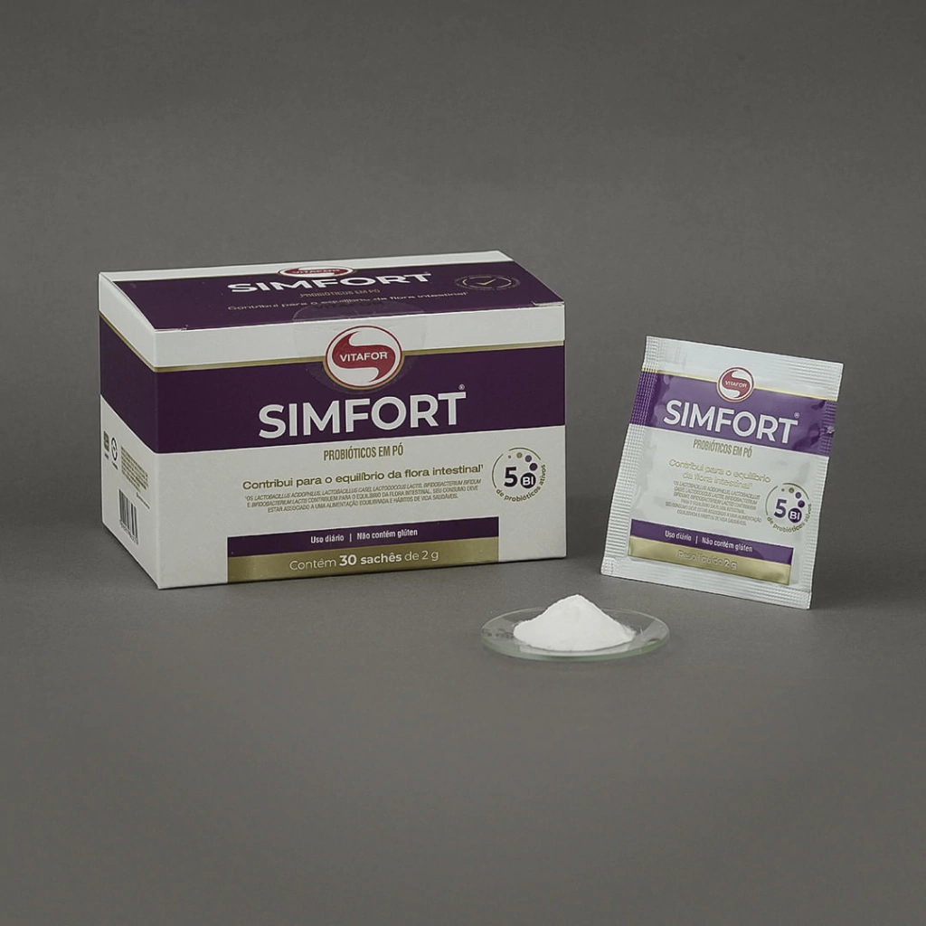 A dose do Simfort contém micro-organismos liofilizados e altamente concentrados: Lactobacillus acidophilus, Lactobacillus casei, Lactococcus lactis, Bifidobacterium bifidum e Bifidobacterium lactis. São um total de 5 bilhões de probióticos por dose, que contribuem com o equilíbrio da flora intestinal1.